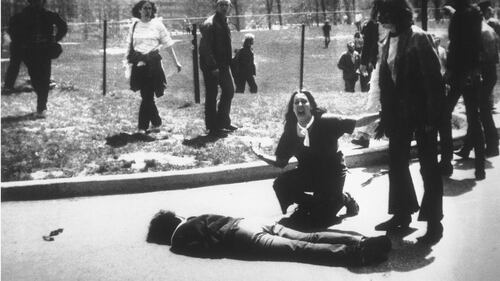 Kent State shootings: Mary Ann Vecchio screams in anguish over the body of Jeffrey Miller after he was fatally shot at Kent State University on May 4, 1970. The photo won a Pulitzer prize for John Filo. (John Filo/Associated Press file)