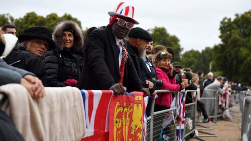The State Funeral Of Queen Elizabeth II LONDON, ENGLAND - SEPTEMBER 19: Mourners pay their respects during the State Funeral of Queen Elizabeth II on September 19, 2022 in London, England. Elizabeth Alexandra Mary Windsor was born in Bruton Street, Mayfair, London on 21 April 1926. She married Prince Philip in 1947 and ascended the throne of the United Kingdom and Commonwealth on 6 February 1952 after the death of her Father, King George VI. Queen Elizabeth II died at Balmoral Castle in Scotland on September 8, 2022, and is succeeded by her eldest son, King Charles III. (Photo by Anthony Devlin/Getty Images) (ANTHONY DEVLIN/Getty Images)