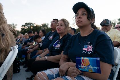 Photos: Fallen police officers honored at candlelight vigil in Washington, DC Survivors listen during the National Law Enforcement Officers Memorial Fund's Annual Candlelight Vigil, on the National Mall, Thursday, Oct. 14, 2021, in Washington. (AP Photo/Alex Brandon)