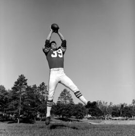 Photos: Hugh McElhenny through the years 1955: Hugh McElhenny displays hit cut away style for the camera during first day workout in Moraga, Calif., July 20, 1955. (AP Photo)