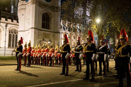 Rehearsal The Sovereign’s Escort of the Household Cavalry Mounted Regiment had the furthest to parade, as they will lead the ceremonial charge for both The King’s Procession to Westminster Abbey, and the return procession from the Abbey.