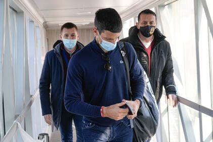 Photos: Novak Djokovic arrives in Serbia after deportation from Australia Novak Djokovic looks as his documents after landing in Belgrade, Serbia, Monday, Jan. 17, 2022. (AP Photo/Darko Bandic)
