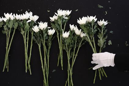 Photos: South Korean mourns, seeks answers in Halloween crowd deaths A woman holds flowers as she pays tribute at memorial altar for the victims of the Halloween celebration stampede, in front of City Hall on October 31, 2022, in Seoul, South Korea. (Chung Sung-Jun/Getty Images)