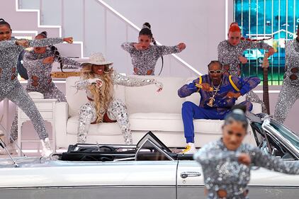 Super Bowl LVI Halftime Show INGLEWOOD, CALIFORNIA - FEBRUARY 13: Dr. Dre and Snoop Dogg perform during the Pepsi Super Bowl LVI Halftime Show at SoFi Stadium on February 13, 2022 in Inglewood, California. (Photo by Steph Chambers/Getty Images) (Steph Chambers/Getty Images)
