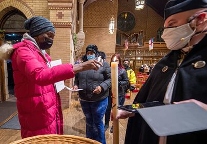 Every winter solstice, the communities will gather to hold the longest night vigil to remember the homeless people who died while on the street. The St. Stephen's Church in Wilkes-Barre held the vigil for the 20th year adding 6 new names of homeless people who died in 2021. (Photo by Aimee Dilger/SOPA Images/LightRocket via Getty Images) (SOPA Images/SOPA Images/LightRocket via Getty Images)