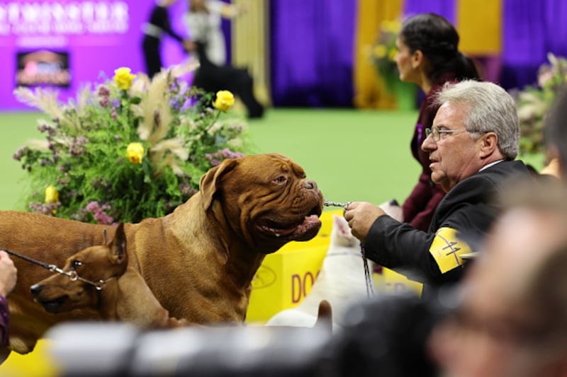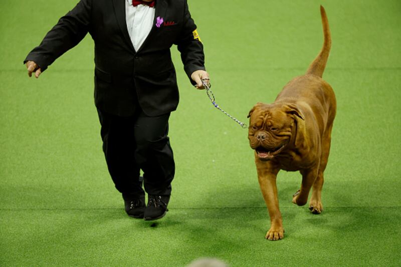 147th Annual Westminster Kennel Club Dog Show Presented by Purina Pro Plan NEW YORK, NEW YORK - MAY 09: A Dogue de Bordeaux competes in the 147th Annual Westminster Kennel Club Dog Show Presented by Purina Pro Plan at Arthur Ashe Stadium on May 09, 2023 in New York City. (Photo by Sarah Stier/Getty Images for Westminster Kennel Club) (Sarah Stier/Getty Images for Westminster Ken)