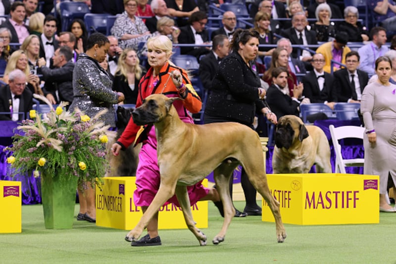 147th Annual Westminster Kennel Club Dog Show Presented by Purina Pro Plan NEW YORK, NEW YORK - MAY 09: A Great Dane competes in the 147th Annual Westminster Kennel Club Dog Show Presented by Purina Pro Plan at Arthur Ashe Stadium on May 09, 2023 in New York City. (Photo by Cindy Ord/Getty Images for Westminster Kennel Club) (Cindy Ord/Getty Images for Westminster Ken)
