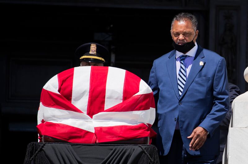 Photos: Jesse Jackson through the years 2020: The Rev. Jesse Jackson pays respect to the late Rep. John Lewis, D-Ga., lying in state on the East Front Steps of the U.S. Capitol, Tuesday, July 28, 2020, in Washington. (AP Photo/Manuel Balce Ceneta)