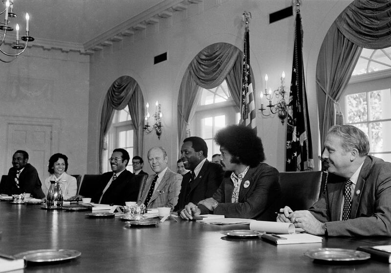Photos: Jesse Jackson through the years 1974: President Gerald Ford talks with Vernon Jordan, center, executive director of the National Urban League, and the Rev. Jesse Jackson, national president of Operation PUSH, during his meeting with civil rights leaders at the White House, Oct. 25, 1974. (AP Photo/Charles Tasnadi)