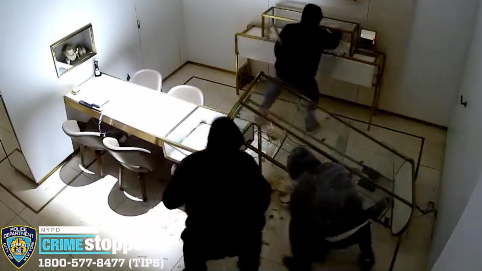 NEW YORK — Three burglars smashed through the doors of a high-end jewelry store on Park Avenue, escaping with over $500,000 worth of jewelry.