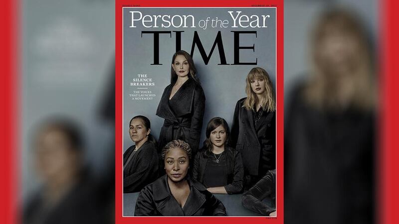 2017 - This image shows the cover of Time's Person of the Year edition as "The Silence Breakers"; those who have shared their stories of sexual assault and harassment. The cover features Ashley Judd, Taylor Swift, Susan Fowler and others.