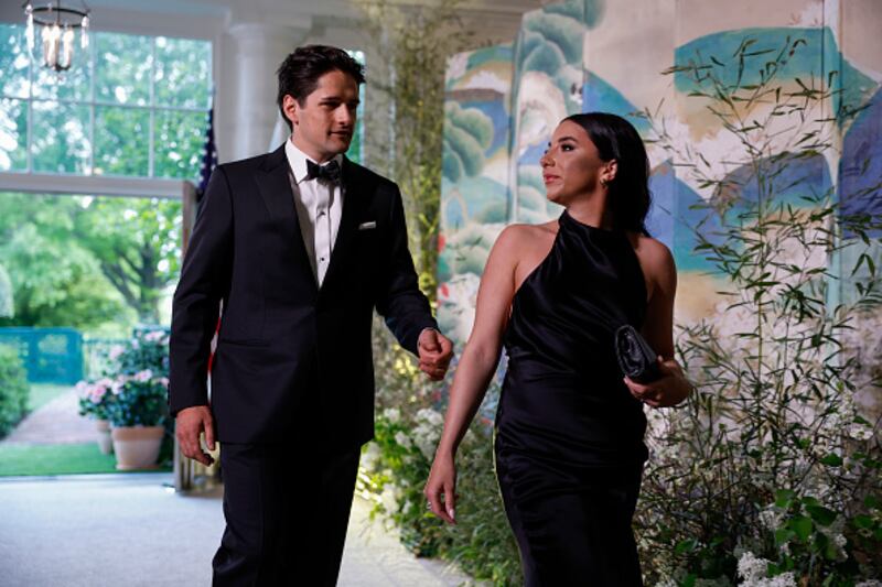 State dinner WASHINGTON, DC - APRIL 26: Jacob Snow and Samantha Cohen arrive for the White House state dinner for South Korean President Yoon Suk-yeol at the White House on April 26, 2023 in Washington, DC. President Joe Biden and first lady Jill Biden are hosting South Korean President Yoon Suk-yeol and South Korean first lady Kim Keon-hee for a State Dinner. (Photo by Anna Moneymaker/Getty Images) (Anna Moneymaker/Getty Images)