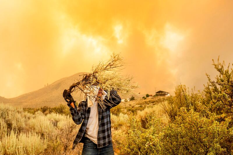 Beckwourth Complex Fire David Garfield clears a fire break around his home as the Sugar Fire, part of the Beckwourth Complex Fire, burns towards Doyle, Calif., on Saturday, July 10, 2021. (AP Photo/Noah Berger) (Noah Berger/AP)