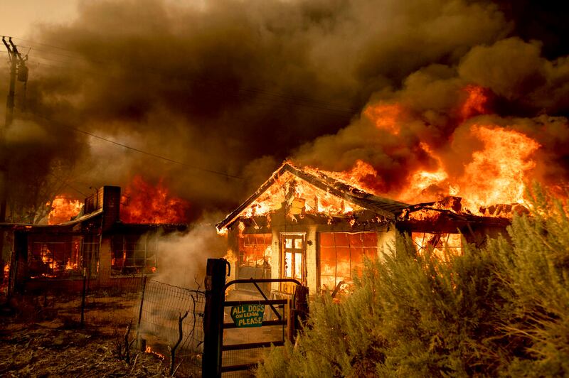 Beckwourth Complex Fire Fire consumes a home as the Sugar Fire, part of the Beckwourth Complex Fire, tears through Doyle, Calif., on Saturday, July 10, 2021. Pushed by heavy winds, the fire came out of the hills and destroyed multiple residences in central Doyle. (AP Photo/Noah Berger) (Noah Berger/AP)