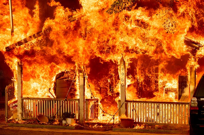 Beckwourth Complex Fire Fire consumes a structure as the Sugar Fire, part of the Beckwourth Complex Fire, tears through Doyle, Calif., on Saturday, July 10, 2021. Pushed by heavy winds, the fire came out of the hills and destroyed multiple residences in central Doyle. (AP Photo/Noah Berger) (Noah Berger/AP)