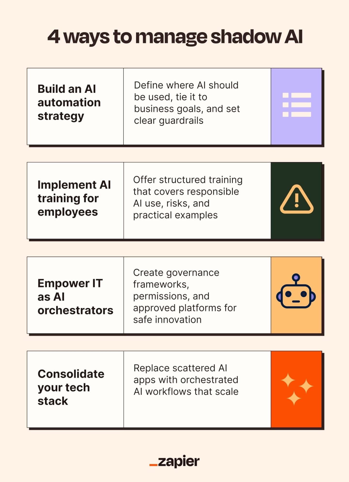 Zapier shares everything you need to know about shadow AI: what it is, why it happens, and ways to mitigate the risks.