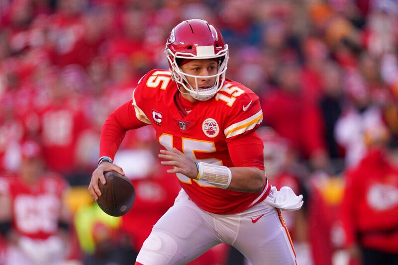 2022 AFC Championship: Chiefs-Bengals Kansas City Chiefs quarterback Patrick Mahomes (15) runs onto the field before the AFC championship NFL football game against the Cincinnati Bengals, Sunday, Jan. 30, 2022, in Kansas City, Mo. (AP Photo/Paul Sancya) (Paul Sancya/AP)