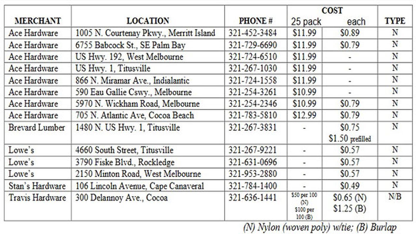 • Cocoa: Residents can self-fill up sandbags at the below locations: