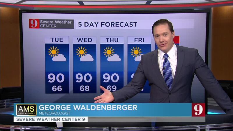 - Expect temperatures into the mid-90s by the late week, and we’ll be watching for more broken records for heat as we go through the week.
