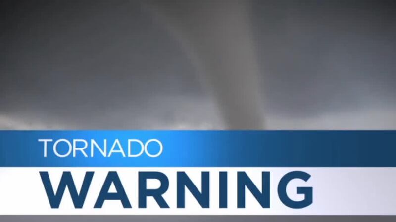 The tornado warning was issued around 2:03 p.m. and will last until 2:30 p.m.