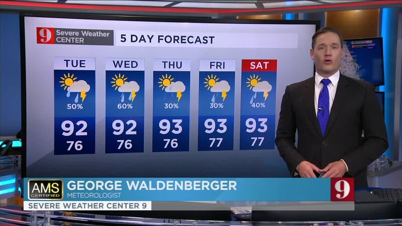 Temperatures are forecast to drop to the mid 70s Monday evening.