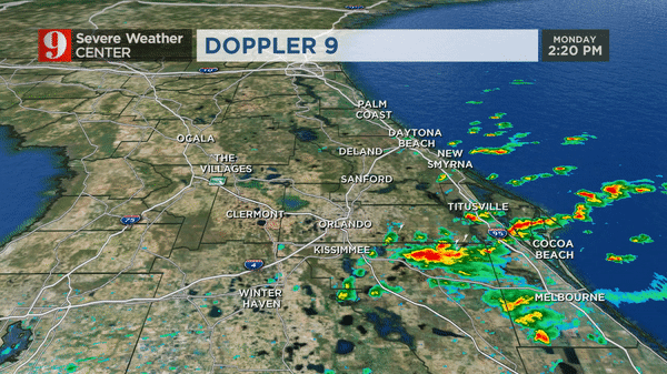 - Scattered showers will continue through the evening, mainly closer to the east-central Florida coast.