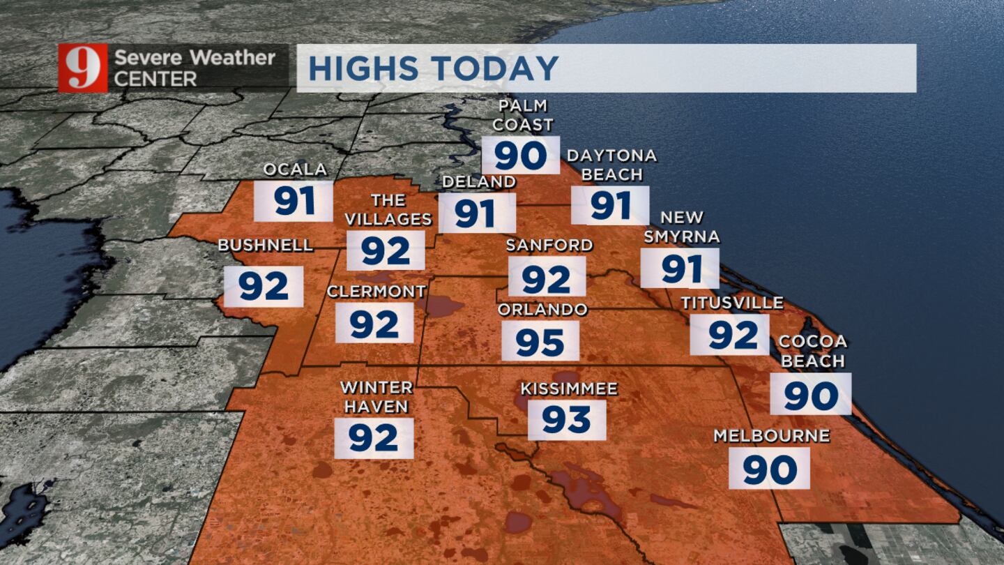 ORLANDO, Fla. — Central Florida is forecast to be hot Wednesday with a better chance of rain and storms.